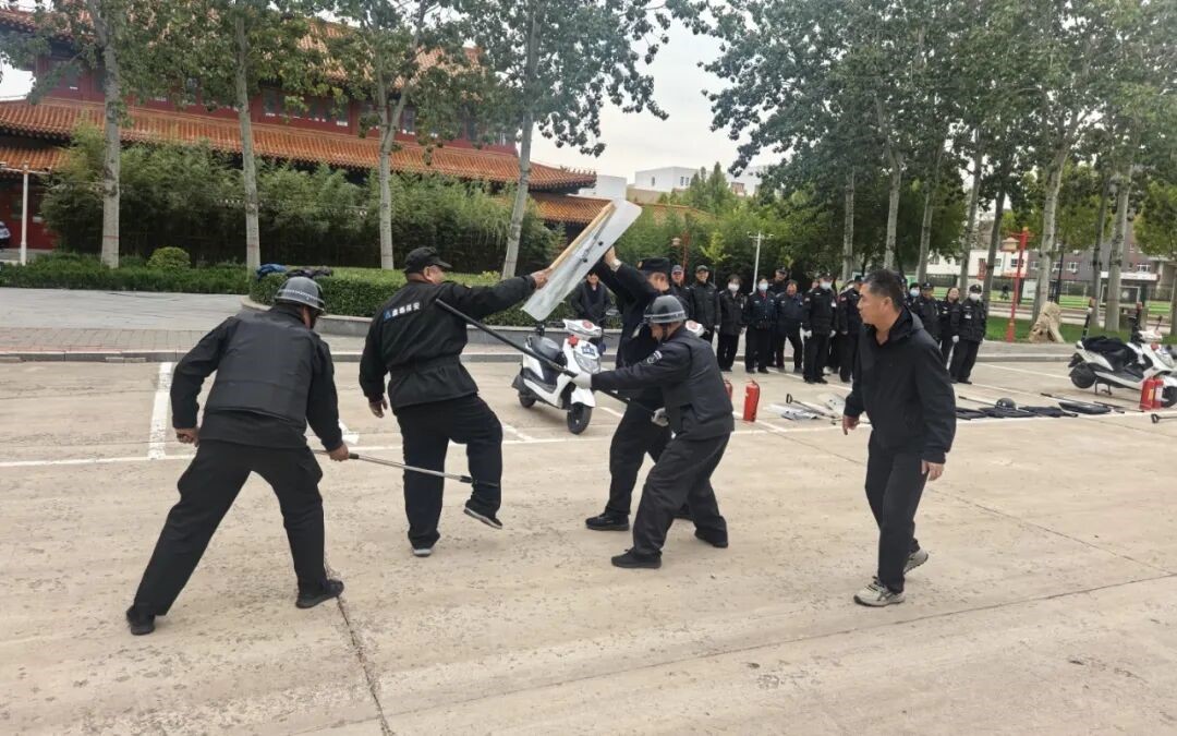 防暴应急培训面向校园安保队伍开展。培训聚焦校园可能遇到的极端暴力威胁场景,由经验丰富的安保教官讲解了防暴盾牌、防暴钢叉、长警棍等专用防护器材的功能特点和使用方法,并演示了在面对持械袭击等紧急情况时,如何利用器械进行有效格挡、控制、制服及团队协作战术。保安队员们随后进行了分组模拟对抗演练,进一步巩固了防暴技能,强化了团队配合意识和临场心理素质。
