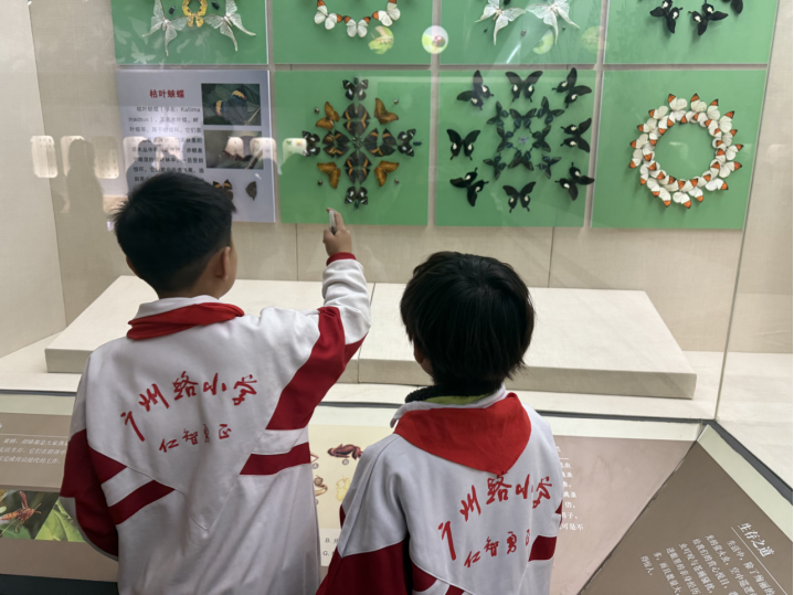 生物标本馆讲解员带领孩子们走进标本馆,开启探索自然的奇妙旅程。在讲解员的引导下,孩子们分组观察动植物标本。“蝴蝶翅膀左右两边的花纹是不是一样?能找到它的对称轴吗?”“大家知道娃娃鱼的学名叫什么吗?”——一个个启发式提问点燃了孩子们的好奇心。