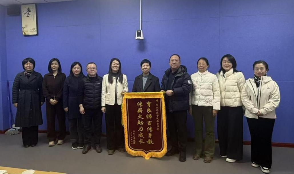 近日,沧州市运河区回民小学书记马淑静、校长张钢、副校长王凤敏和白雪专程到校,为教育学院、物理与信息工程学院送来锦旗与感谢信,对我校实习学生的专业素养和实践能力给予高度赞誉,对我校实践育人工作成效表示充分肯定。学校教务处长何兰芝、副处长刚建华及教育学院、物理与信息工程学院领导班子出席授旗仪式,并与实习基地代表沧州市回民小学共话合作、共谋发展。