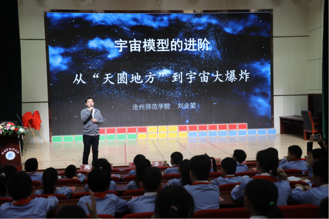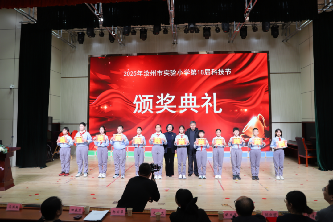 随后,双方代表签署共建协议,迟建文与杨丽萍共同为“物理与信息工程学院教育教学实践基地”和“科学教育研学基地”揭牌。在聘书颁发环节,刘业堃被聘为沧州市实验小学科学副校长,吴沫虹、胡晴晴分别受聘为科学教育顾问、科技辅导员;沧州市实验小学吕春龙、李艳两位教师受聘为物理与信息工程学院实践导师,为双方师资共建、教研互通筑牢基础。仪式现场还为科技节获奖学生举行颁奖仪式,刘业堃以科学教育为主题开展专题讲座,为在场师生带来一堂生动的科学启蒙课。