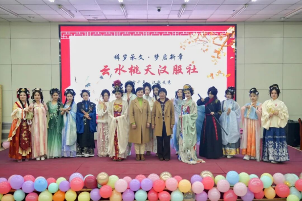 为丰富校园文化生活,厚植人文艺术底蕴,近日,文学院雷雨剧社、云水桃夭汉服社、中兴书法社、“知乐游”文学社于学术报告厅联合举办“辞岁承文,梦启新章”社团年度展演。文学院党总支书记金晓雪、副书记高雪莲到场观看。