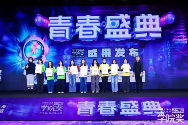 近日,中国大学生广告艺术节学院奖2025秋季征集大赛青春盛典在北京广播大厦举行。齐越传媒学院获奖学生代表及指导教师受邀赴京参加颁奖典礼,与来自全国的青年创意人才齐聚一堂、共襄盛会。