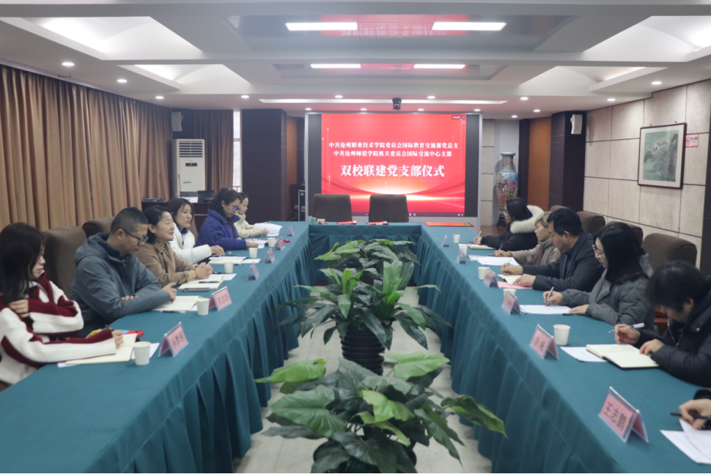 为以高质量党建引领国际教育交流合作,实现校际资源共享、优势互补,1月8日,我校国际交流中心支部与沧州职业技术学院国际教育交流部党总支联建党支部会议顺利召开。双方党员代表齐聚,以党建为纽带,共商国际教育合作新思路。