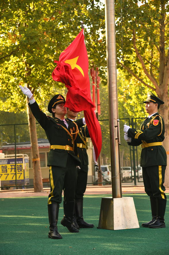 国歌声起,红旗飘扬,全体师生目光凝聚于那抹鲜艳的中国红,注视着五星红旗冉冉升起,向祖国致以最崇高的敬意。这一刻,爱国情怀与体育精神在每个人心中交融激荡。