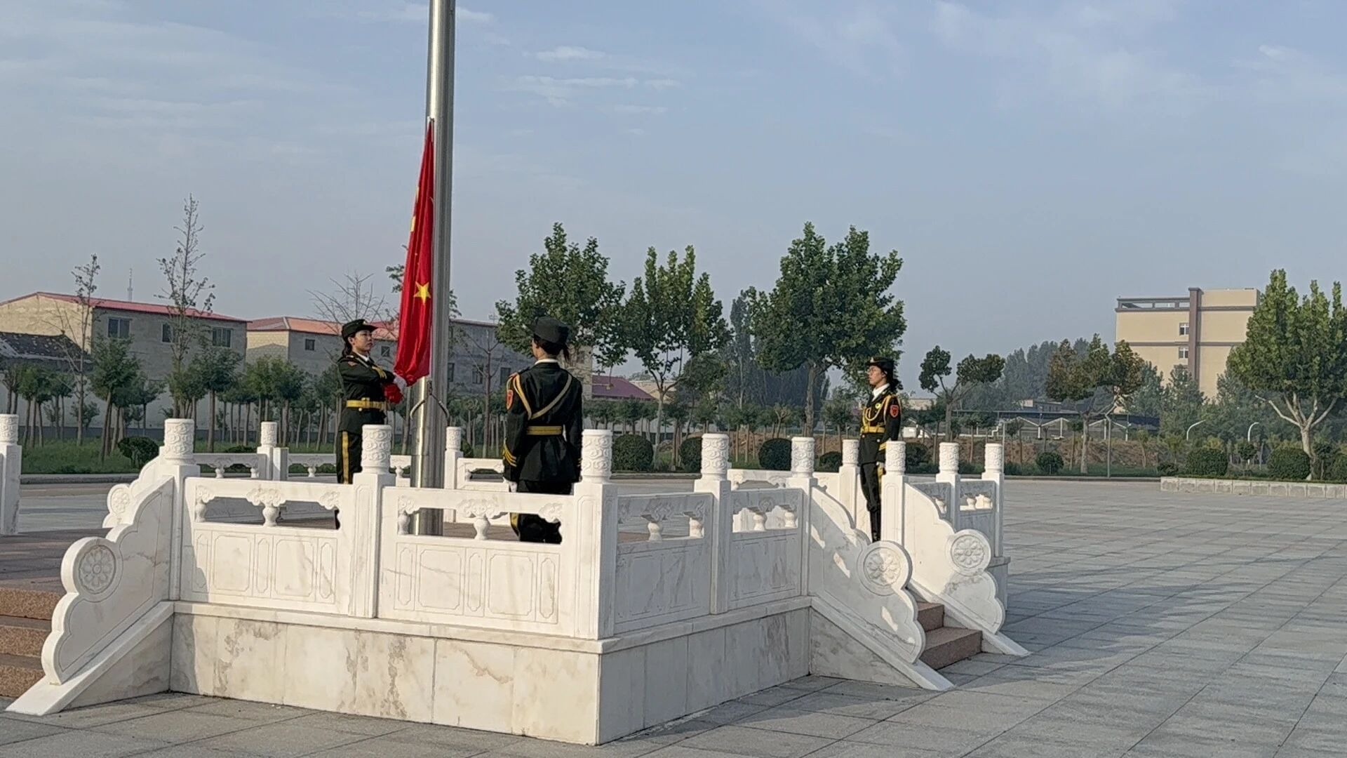 破晓时分,校国旗护卫队队员们已集结完毕。他们身着笔挺制服肩扛神圣使命,每一步铿锵步伐都踏响忠诚的节拍,每一次眼神交汇都传递着必胜的信念。当激昂雄壮的国歌声奏响,升旗手奋力挥臂,五星红旗如一团燃烧的火焰,迎着朝阳,缓缓升起。在这个特别的时刻,每个人的心中都涌动着澎湃的爱国之情,师生以这样庄重而神圣的方式,为祖国母亲献上最深情的贺礼,共同祈愿祖国的明天更加繁荣昌盛,国泰民安。