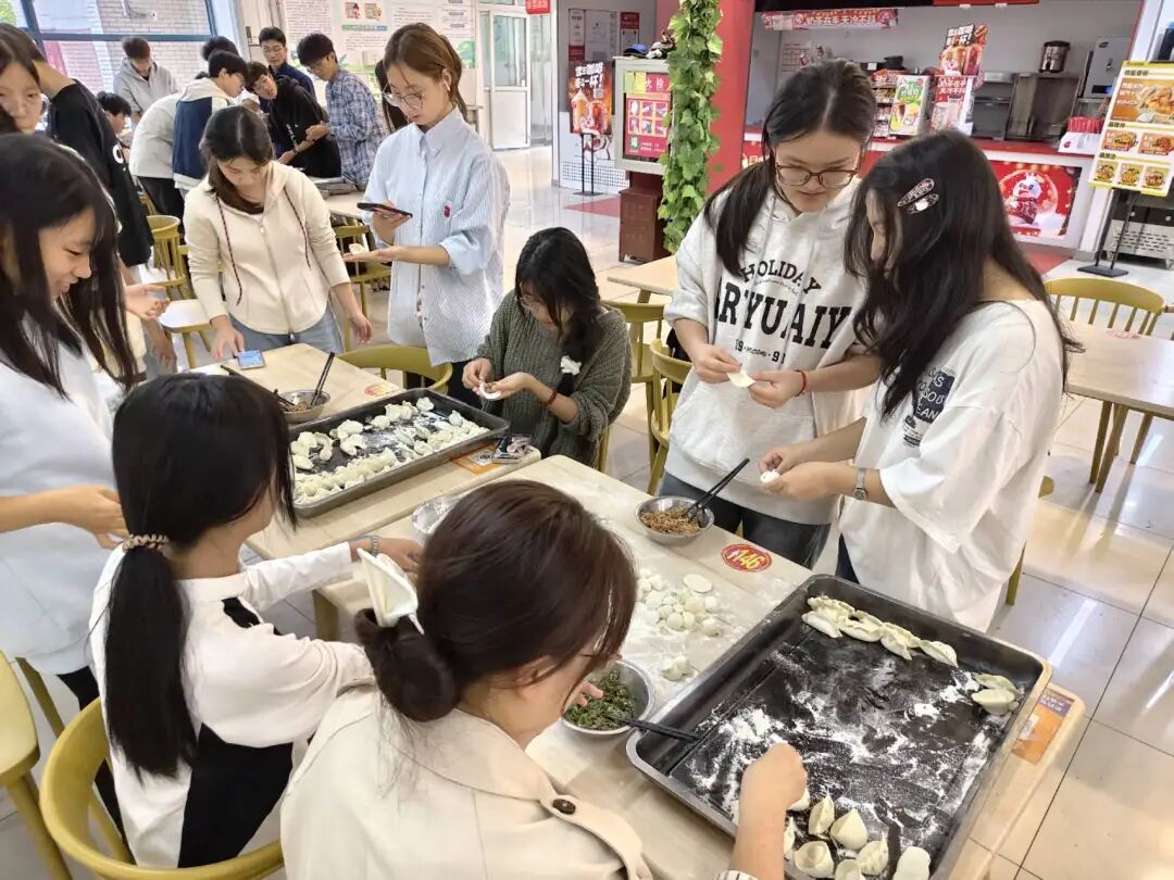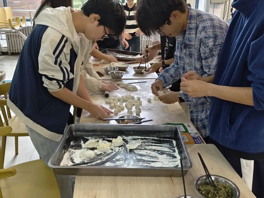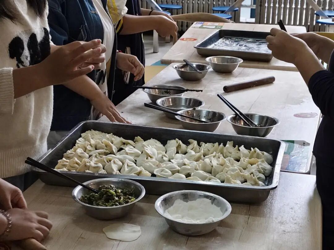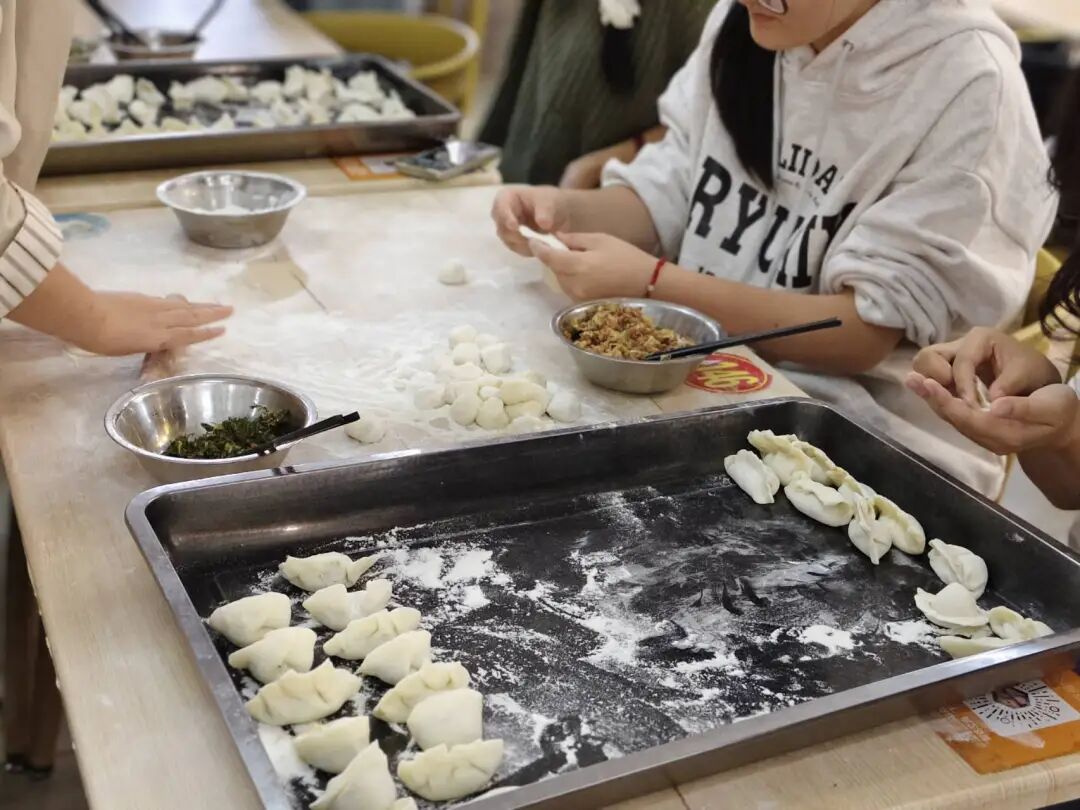 巧手齐聚,饺香满溢:一场校园里的“饺子派对” 活动现场,同学们齐聚一堂,挽起袖子,在欢声笑语中开启了包饺子的“战役”。有的同学手法娴熟,捏出的饺子个个饱满匀称;有的同学则是初次尝试,饺子形状各异,惹得大家阵阵欢笑。随着时间推移,托盘里的饺子越堆越多,它们挤挤挨挨,在灯光下泛着柔和的光,仿佛在诉说着校园里的团圆故事。