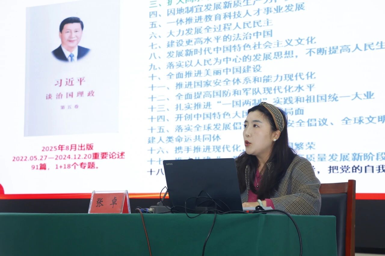 张卓系统梳理了《习近平谈治国理政》第五卷的逻辑脉络,阐释了其出版背景与重大意义,深入解读了其核心要义、精神实质、丰富内涵和实践要求,指出学习《习近平谈治国理政》第五卷需把握“干什么、怎么干、以什么理论指引、依靠什么力量、如何让理论落地”五个关键,做到将理论学习转化为政治站位、工作能力和奋斗动力。