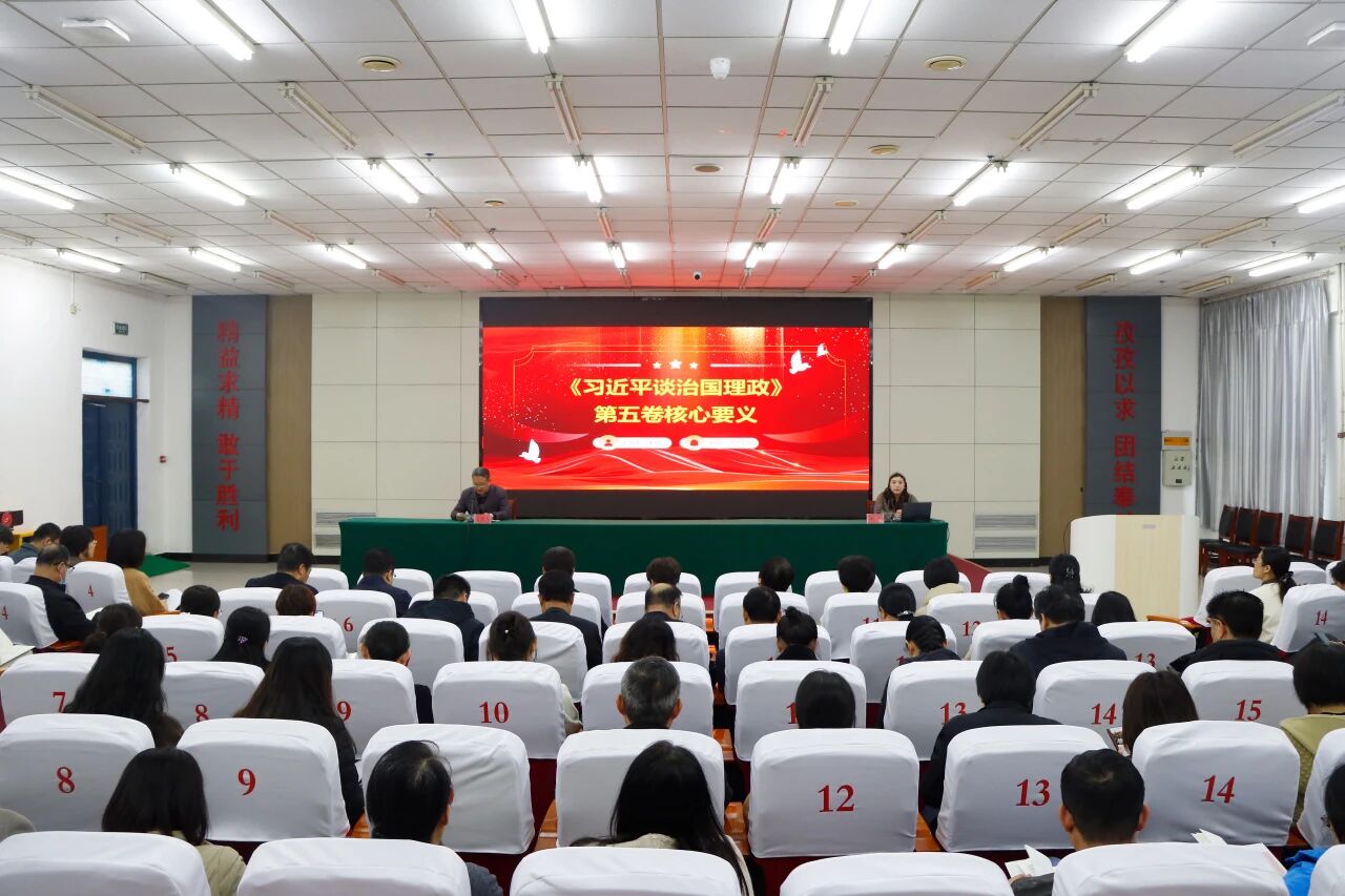 10月30日,我校在学术报告厅举办《习近平谈治国理政》第五卷辅导讲座,邀请马克思主义学院青年教师张卓作专题授课,宣传部部长李健主持活动,全体中层干部参加讲座。