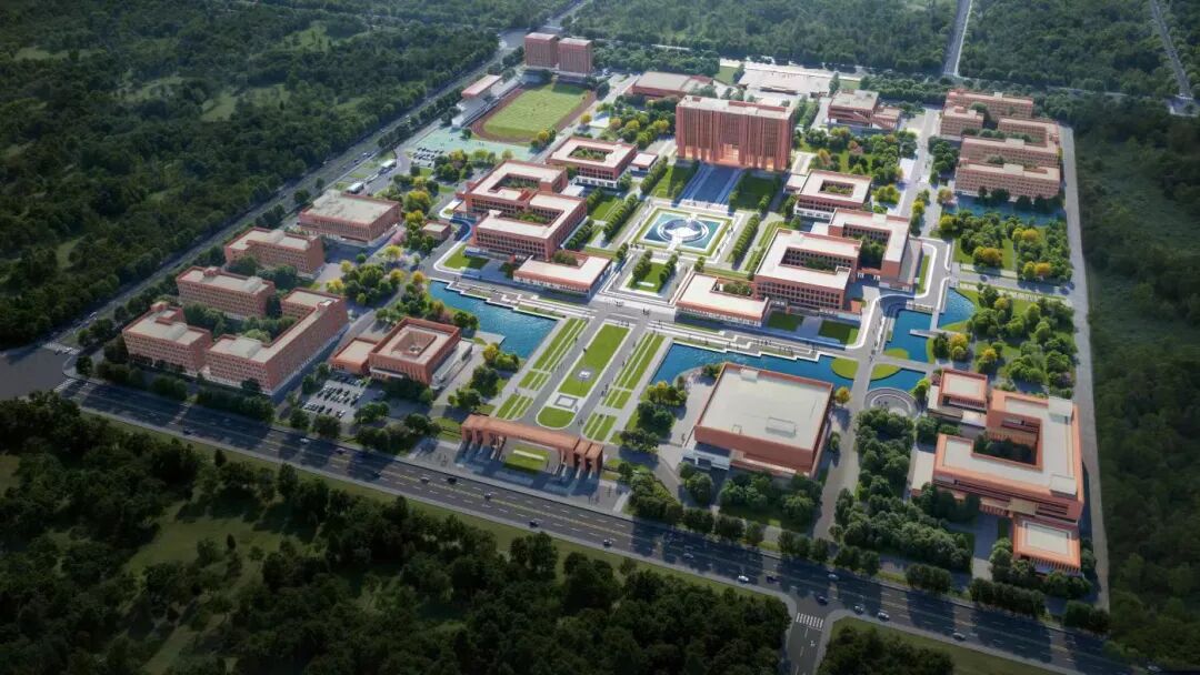 东校区整体规划采用树状科学环统领校园整体核心区,环绕核心区为两大生活区、体育区及公共配套区。各功能区通过南北的礼仪轴、东西的学术发展轴串联,形成了礼乐相生、动静分区明确的整体规划布局。
