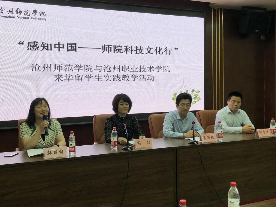 “感知中国——师院科技文化行”来华留学生实践教学活动由国际交流学院院长韩丽梅主持。沧州职业技术学院国际教育交流部副主任邵青臣、团委书记马聪颖陪同参观。
