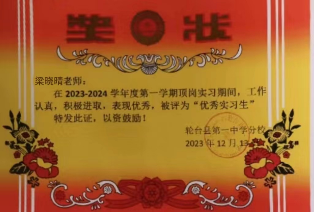她长于观察学情,根据学情钻研适合的教学方法,取得了很好的教学效果,被授予优秀实习生。她在新疆最喜欢的实习活动就是集体教研,因为她觉得大家一起可以探讨出更合理、更恰当的教学方法。