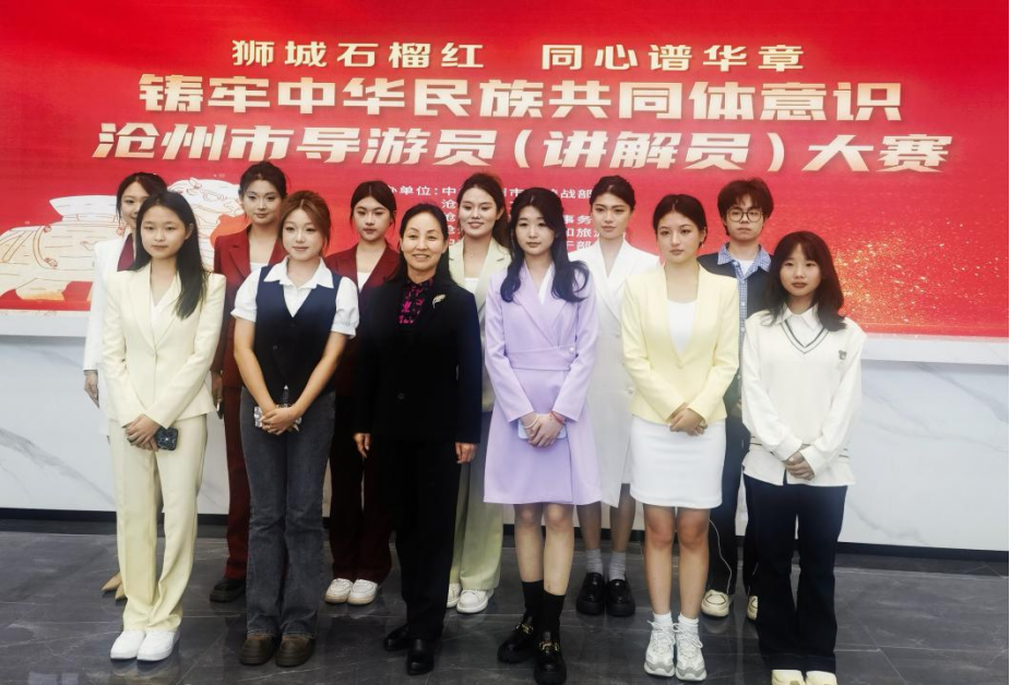10月14日,由中共沧州市委统战部、沧州市总工会、沧州市民宗局等部门联合主办的“铸牢中华民族共同体意识”导游讲解员大赛“未来之星”组比赛圆满落幕。沧州师范学院学子凭借扎实的专业功底与深刻的主题诠释斩获多项荣誉,商学院学生张冬月摘得一等奖,齐越传媒学院学生刘宇青获二等奖,商学院学生杜逸宁与齐越传媒学院学生崔彦丹、郑鑫宇获三等奖,另有11名同学获优秀奖,充分展现了师院学子的综合素质与青春风采。