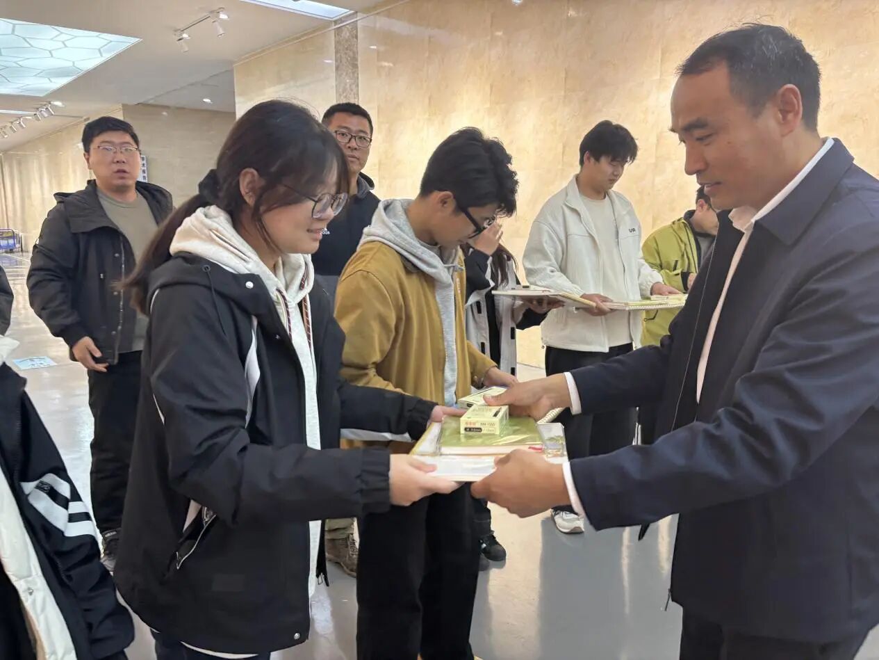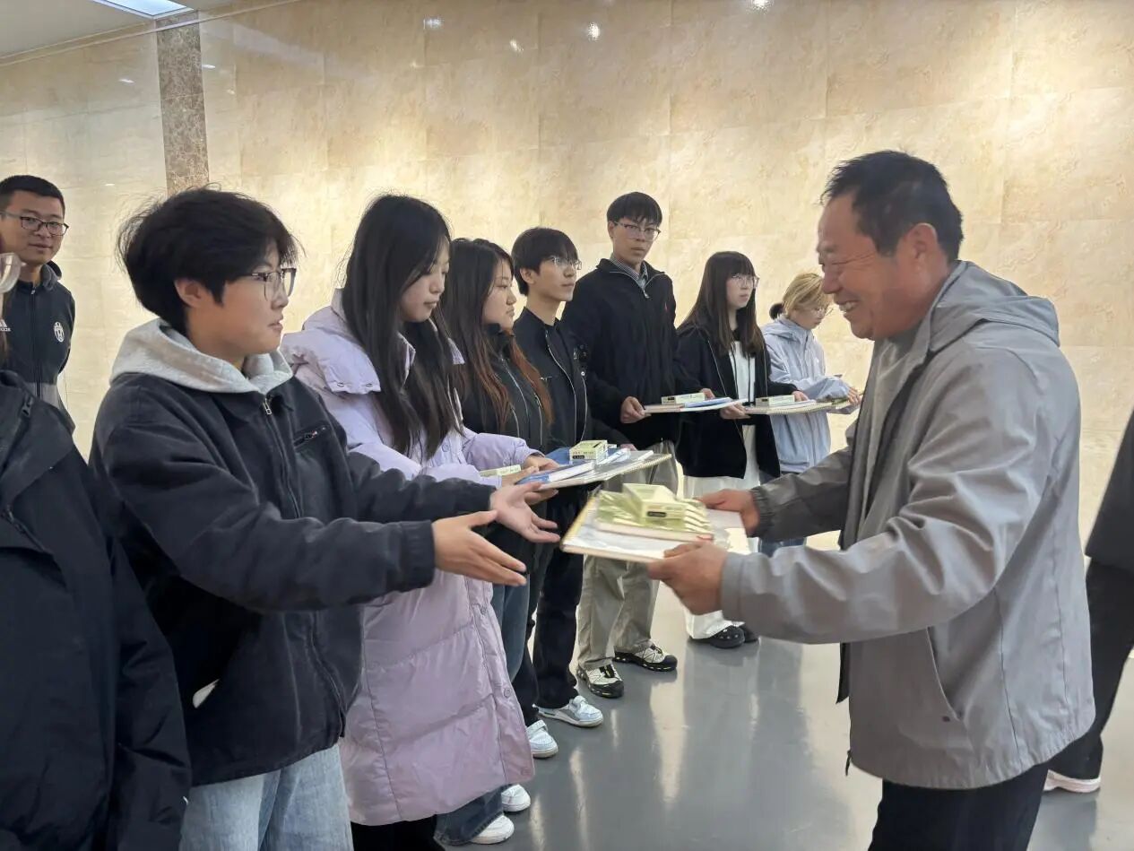 王乐群、王进起为25名获奖同学颁发奖品并合影留念