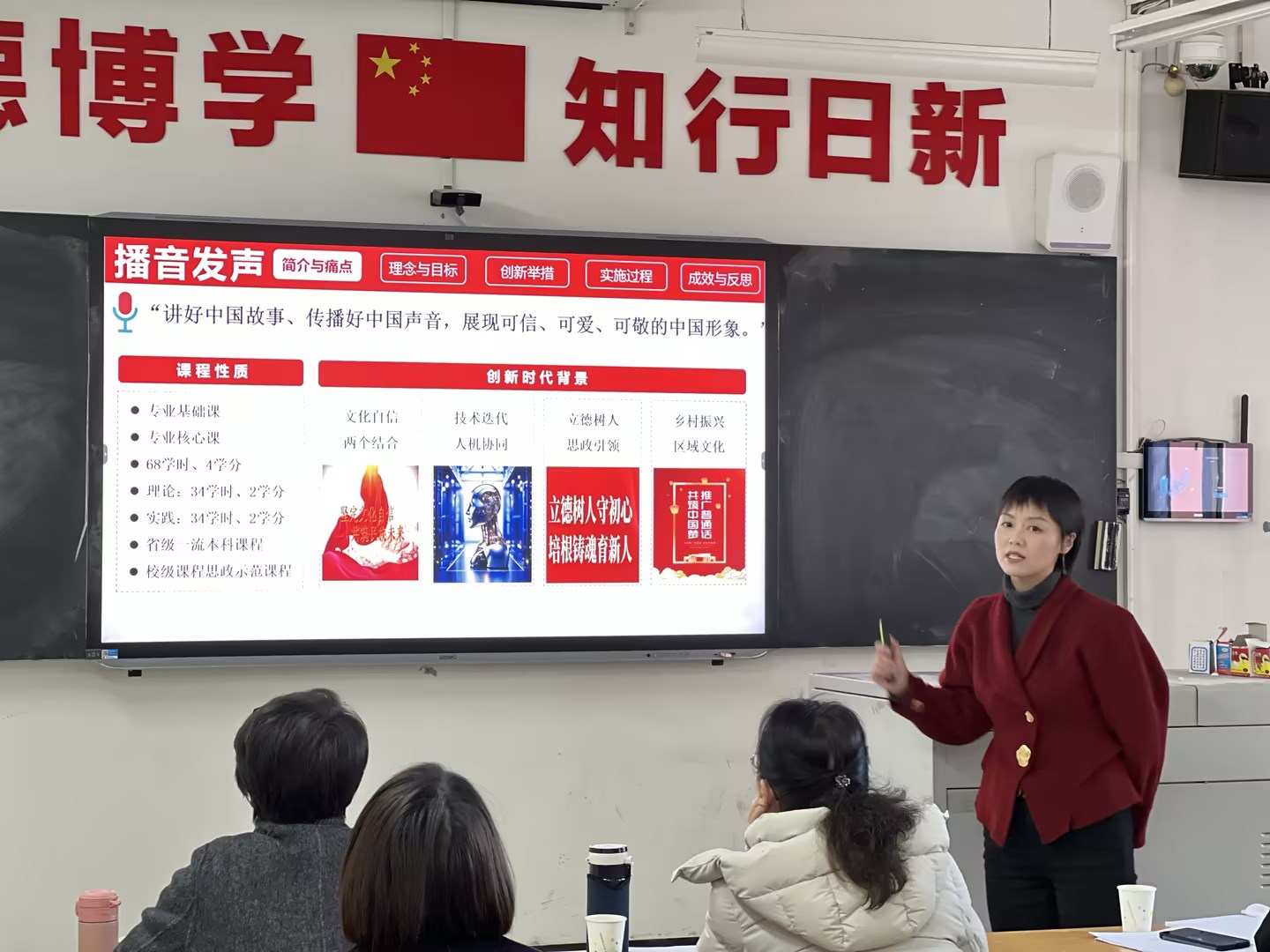 评审环节,专家团从“创新点实效性”“痛点提炼”“课程思政融入”三个层面进行综合评分。最终,《短视频创意与运营》《导演基础》《播音发声》三门课程凭借鲜明的创新理念、扎实的教学设计及显著的育人成效脱颖而出,将分别代表讲师组、副高组、课程思政组参加校赛。
