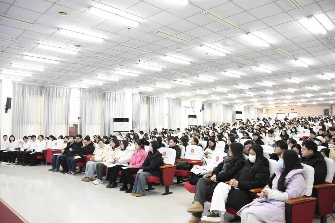 为准确把握就业形势,凝聚师生共识,激发奋进动力,充分发挥教师党员在就业工作中的先锋模范作用,助力大三、大四同学明晰就业赛道,12月26日上午,政史学院在学术报告厅举办2026届毕业生就业工作推进会暨“党员带就业”启动会。政史学院党总支书记程艳芳、院长吴洪锋、党总支副书记姚景芝、副院长霍凤娥出席,各年级辅导员、教师党员代表、学业指导教师,以及2022和2023级全体同学共五百余人参加。学院师生联合党支部书记殷庆双主持。