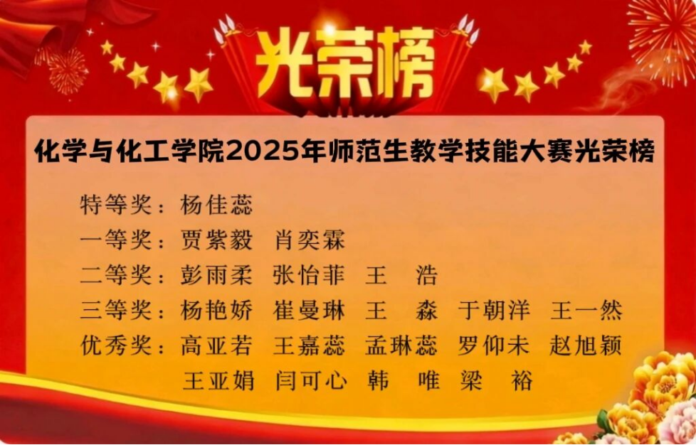 为锤炼师范生教学本领,激发实践热情,化学与化工学院举办了2025年度试讲试教暨师范生教学技能大赛。大赛自2025年9月28日启动,历时近三个月,于12月25日圆满落下帷幕。