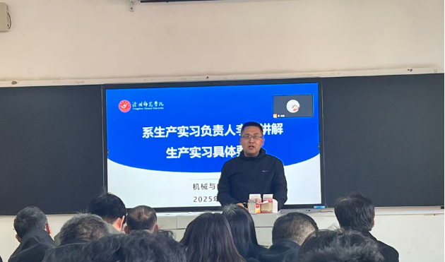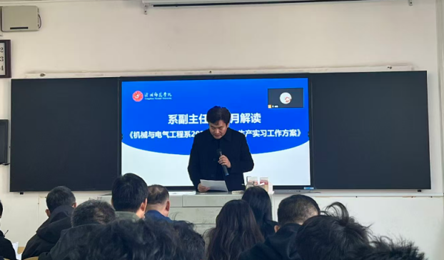 赵治月解读了《机械与电气工程系2026届毕业生生产实习工作方案》,就本次生产实习的具体内容、实习要求进行了全面宣讲。