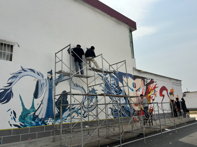 2025年4月16日至26日,学院优化团队结构,在许国超带领下,10名学生和4名指导老师完成5幅聚焦品牌塑造和产业导流的墙绘,总面积400多平方米。