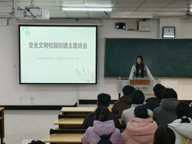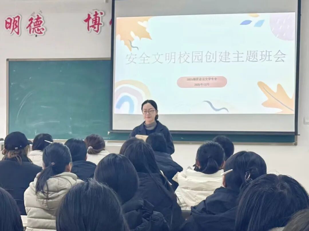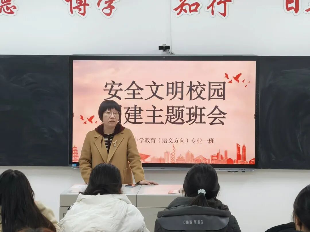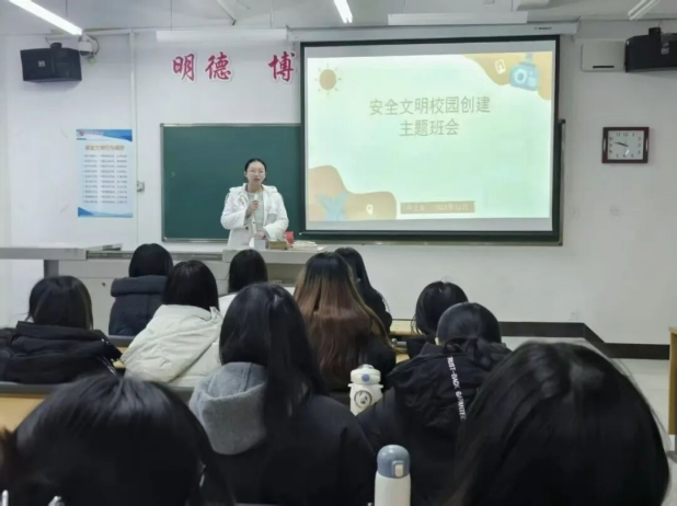 安全文明校园创建主题班会同步开展。辅导员围绕警惕网络诈骗、严守安全用电、杜绝违规包车等安全要点展开专题教育,引导学生提升风险防范意识;同时强化文明素养培育,涵盖诚信考试、无烟校园、光盘行动等内容,切实将安全文明理念融入学生日常行为规范。