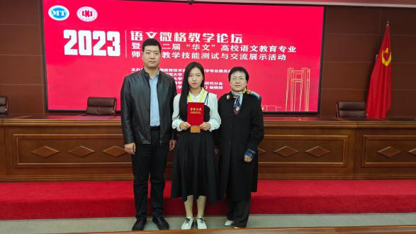 11月6日,由中国教育技术协会微格教学专业委员会主办,江西师范大学承办的语文微格教学论坛暨第十二届“华文”高校语文师范生教学技能测试与交流展示活动在江西师范大学圆满落幕。在文学院语文课程与教学论教研室主任苏聪聪的带领下,文学院六名学生参加比赛,并在强手如云的竞赛中脱颖而出,在“教学设计”和“现场教学技能”两个单项比赛中斩获一等奖八项,二等奖四项。