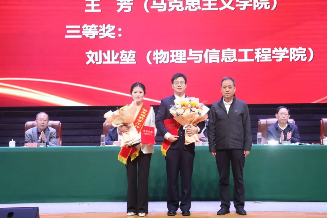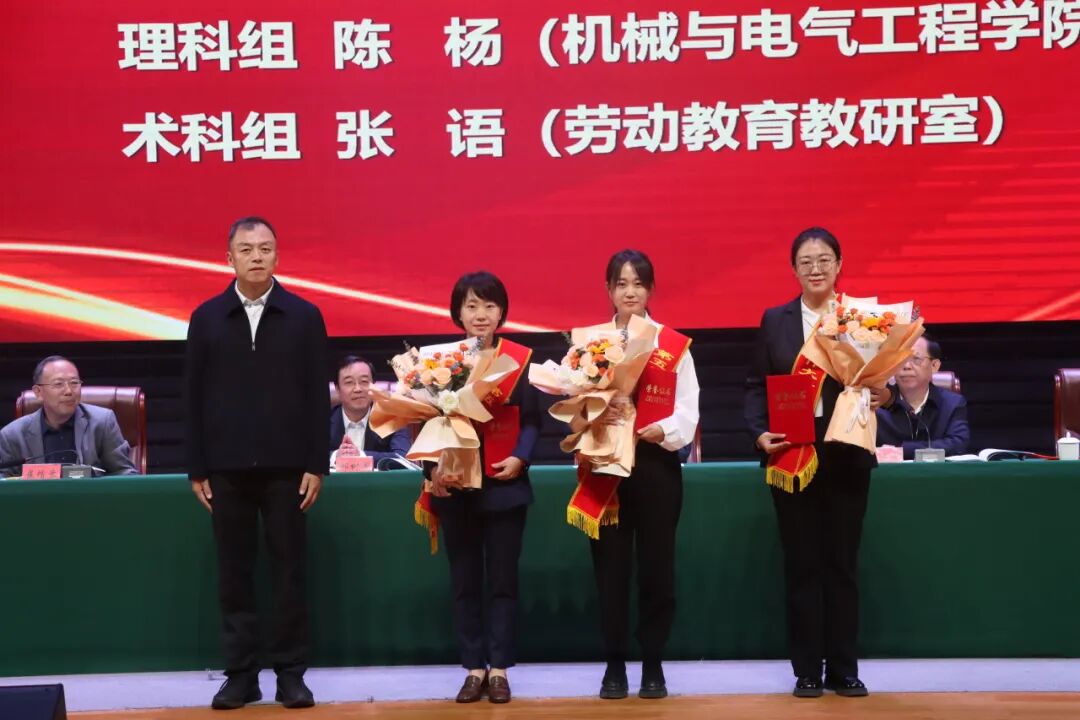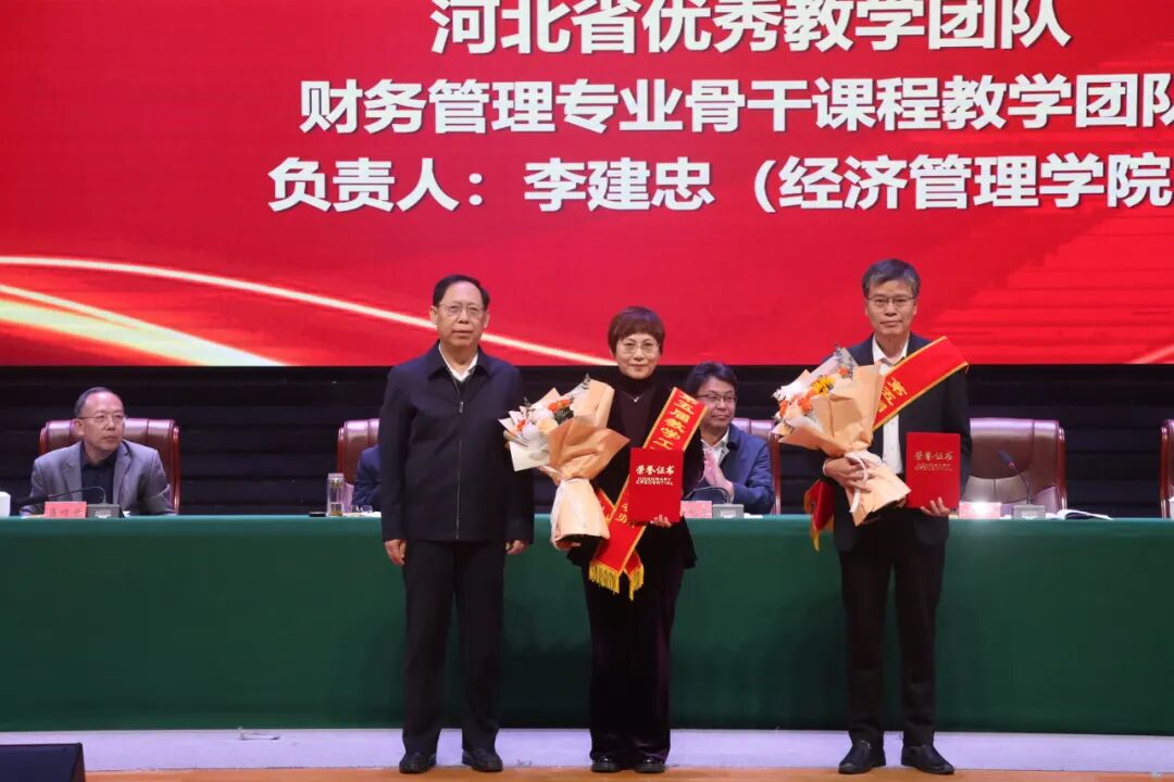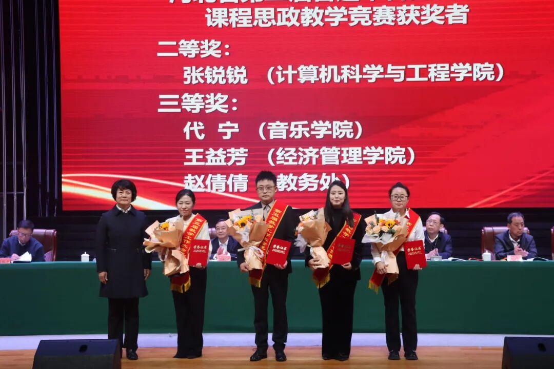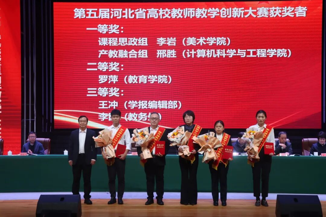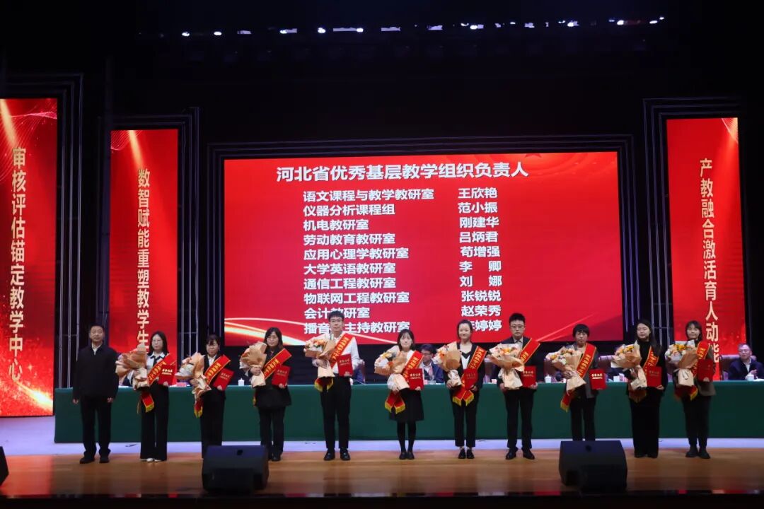 大会对我校干部教师取得的国家级一流课程、河北省“十四五”普通高等教育本科规划教材主编、2025年河北省教学名师和优秀教学团队、第五届河北省高校教师教学创新大赛、河北省高校青年教师教学竞赛、第二届河北省普通本科高校课程思政教学竞赛、入选教育部典型案例、河北省优秀基层教学组织、2025年指导学生获得国家级学科竞赛指导教师、沧州师范学院2025年青年教师讲课大赛获奖教师等荣誉和称号进行了表彰。与会领导为获得表彰的集体和个人颁奖。这份荣誉不仅是对过去努力的肯定,更是对教师们持续深耕课堂、潜心育人的鼓励。