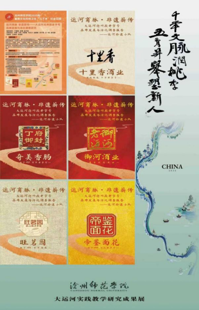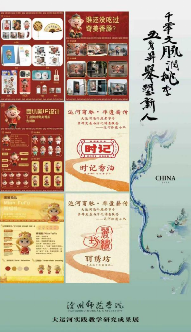 紧扣各专业人才培养目标,将大运河文化与专业课程深度融合,如美术学等专业依托“艺术考察”省级一流课程,组织学生开展运河文化调研与艺术创作,举办大运河主题师生作品展;汉语言文学专业梳理运河沿岸书院教育、驿路诗歌,组织学生参与运河文化研学方案和路线设计;书法学专业以大运河为创作源泉,以书法形式演绎历代文人笔下的大运河,举办“运河书情”毕业作品展,获得业界高度认可;音乐学、舞蹈编导专业挖掘运河漕运号子、南皮落子、沧州民歌,以运河历史故事为蓝本,编排音乐舞蹈剧《运河驿站》;艺术设计学将运河沿岸建筑、民俗风情转化为艺术作品,结合沧州运河文化IP,设计书签、装饰画、非遗衍生品等文创产品;广播电视编导、播音与主持艺术、网络与新媒体等专业创作运河风光摄影、主题视频、音频作品及文创产品等近500件,多部作品被中国教育电视台及“学习强国”平台选用。